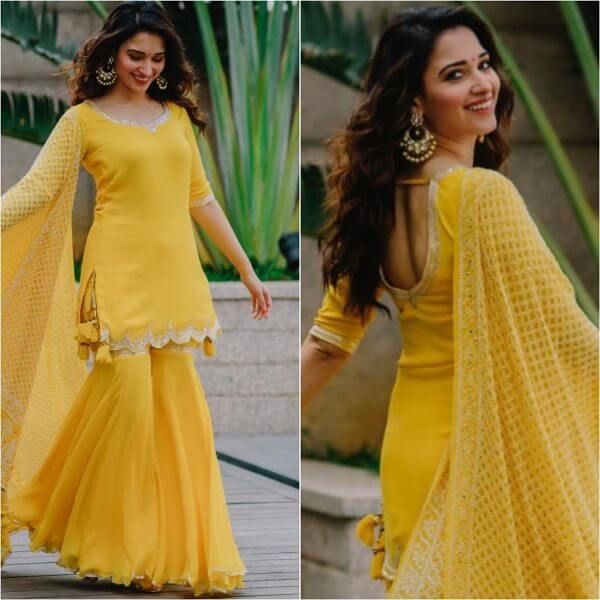 Yellow Garara Sharara Set Kurtis for Haldi Ceremony | Best Designer Suit for Girls Haldi Ceremony. D